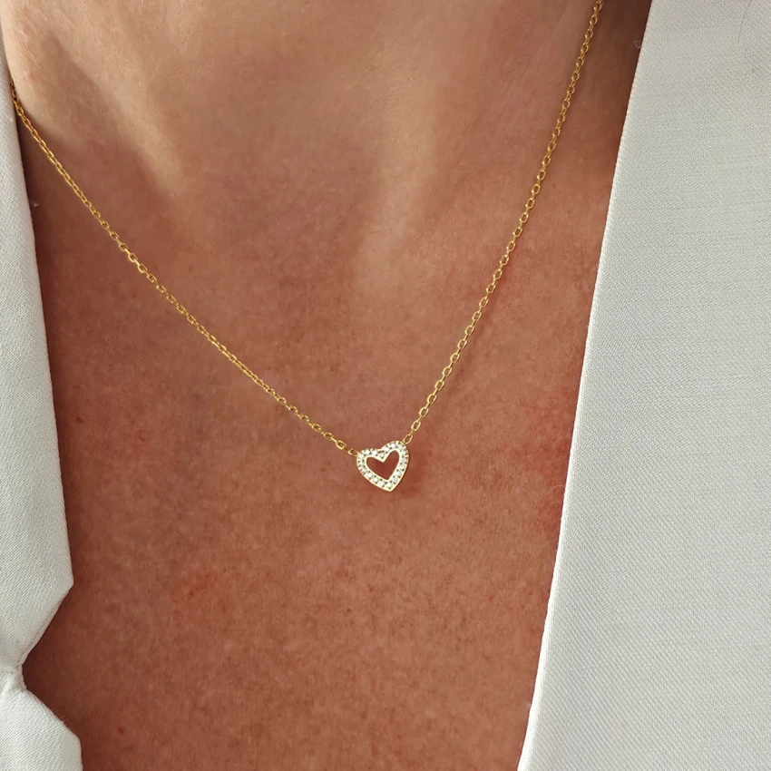 Keep it simple and classy with the heart chain crystal necklace. Made of stainless steel.
